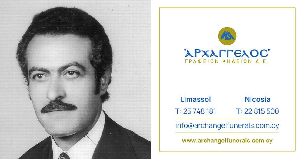 που απεβίωσε την Πέμπτη 26.12.2024, σε ηλικία 86 ετών, κηδεύουμε τη Δευτέρα 30.12.2024 και ώρα 1:00 μ.μ. από τον Ιερό Ναό Αγίου Ελευθερίου στη Λεμεσό και καλούμε όσους τιμούν τη μνήμη του να παραστούν.
