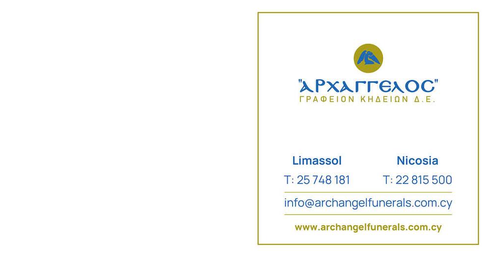 που απεβίωσε την Κυριακή 16.04.2023, κηδεύουμε τη Παρασκευή 21.04.2023 και ώρα 11:30 π.μ. από τον Ιερό Ναό Αγίου Νικολάου στη Λεμεσό και καλούμε όσους τιμούν τη μνήμη της να παραστούν.