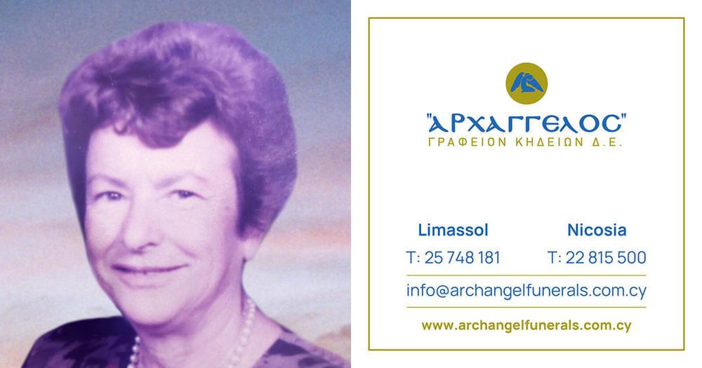 που απεβίωσε στις 20.04.2023 κηδεύουμε τη Παρασκευή 21.04.2023 και ώρα 1:30 μ.μ από τον Ιερό Ναό Αγίου Αρσενίου στη Λεμεσό και καλούμε όσους τιμούν τη μνήμη της να παραστούν.