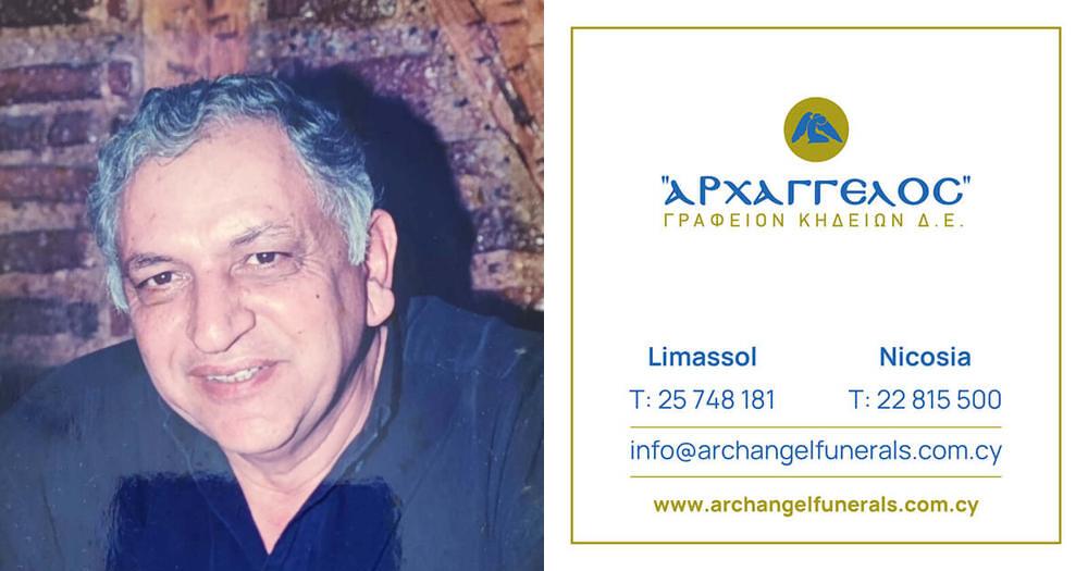 που απεβίωσε την Τετάρτη 30.07.2025, σε ηλικία 80 ετών, κηδεύουμε το Σαββάτο 02.08.2025 και ώρα 09:30 π.μ. από τον Ιερό Ναό Αγίου Κοσμά Αιτωλού στη Λεμεσό και καλούμε όσους τιμούν τη μνήμη του να παραστούν.