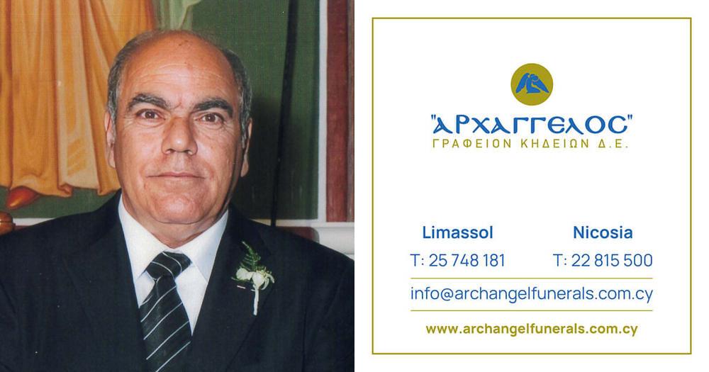 που απεβίωσε στις 30.05.2025, σε ηλικία 68 ετών, κηδεύουμε τη Δευτέρα 02.06.2025 και ώρα 2:00 μ.μ. από τον Ιερό Ναό Αγίου Κοσμά Αιτωλού στη Λεμεσό και καλούμε όσους τιμούν τη μνήμη του να παραστούν.