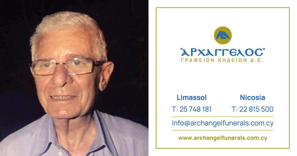 που απεβίωσε την Παρασκευή 13.09.2024, σε ηλικία 84 ετών, κηδεύουμε την Τρίτη 17.09.2024 και ώρα 12:30 μ.μ. από τον Ιερό Ναό Αγίου Κοσμά του Αιτωλού (κοιμητήριο Σφαλαγγιώτισσας) στη Λεμεσό και καλούμε όσους τιμούν τη μνήμη του να παραστούν.