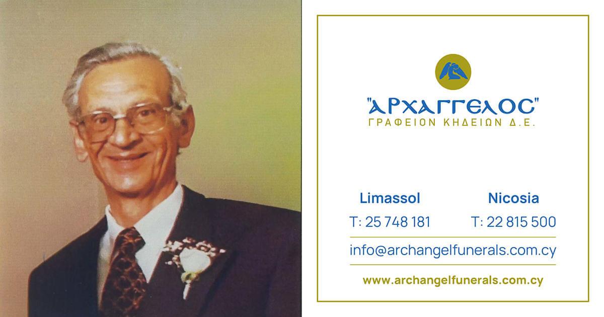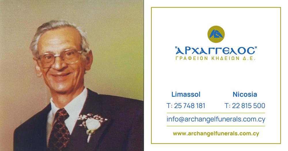 που απεβίωσε τη Παρασκευή 23.01.2026, σε ηλικία 93 ετών, κηδεύουμε την Τρίτη 27.01.2026 και ώρα 12:30 μ.μ. από τον Ιερό Ναό Αγίου Κοσμά Αιτωλού (κοιμητήριο Σφαλαγγιώτισσας)στη Λεμεσό και καλούμε όσους τιμούν τη μνήμη του όπως παραστούν.