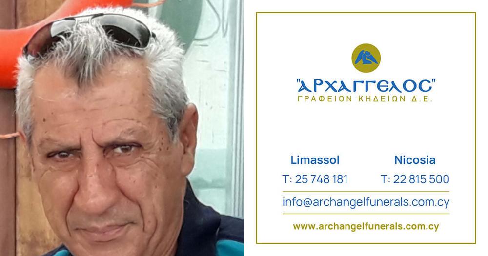 που απεβίωσε το Σάββατο 15.6.2024, κηδεύουμε την Τετάρτη 19.6.2024 και ώρα 12:30 μ.μ. από τον Ιερό Ναό Αγίου Κοσμά Αιτωλού (κοιμητήριο Σφαλαγγιώτισσας) στη Λεμεσό και καλούμε όσους τιμούν τη μνήμη του να παραστούν.