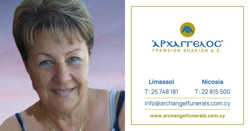 που απεβίωσε την Τρίτη 01.07.2025, σε ηλικία 75 ετών, κηδεύουμε την Τετάρτη 02.07.2025 και ώρα 10:30 π.μ. από τον Ιερό Ναό Παναγίας Χρυσαϊφυλιώτισσας στην Αγία Φύλα, Λεμεσό και καλούμε όσους τιμούν τη μνήμη της να παραστούν.