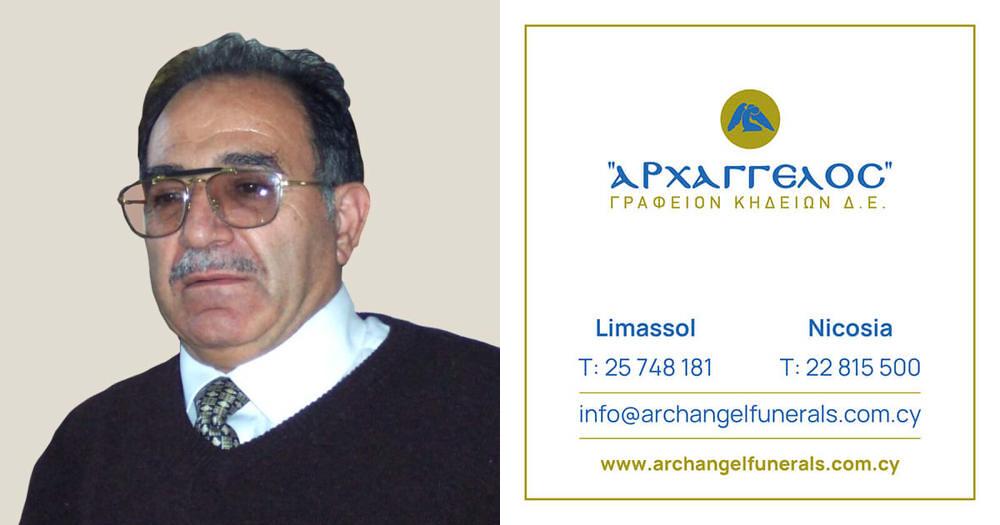 που απεβίωσε την Παρασκευή 04.07.2025, σε ηλικία 79 ετών, κηδεύουμε το Σάββατο 12.07.2025 και ώρα 10:00 π.μ. από τον Ιερό Ναό Αποστόλου Ανδρέα Χαράκη στη Λεμεσό και καλούμε όσους τιμούν τη μνήμη του να παραστούν.