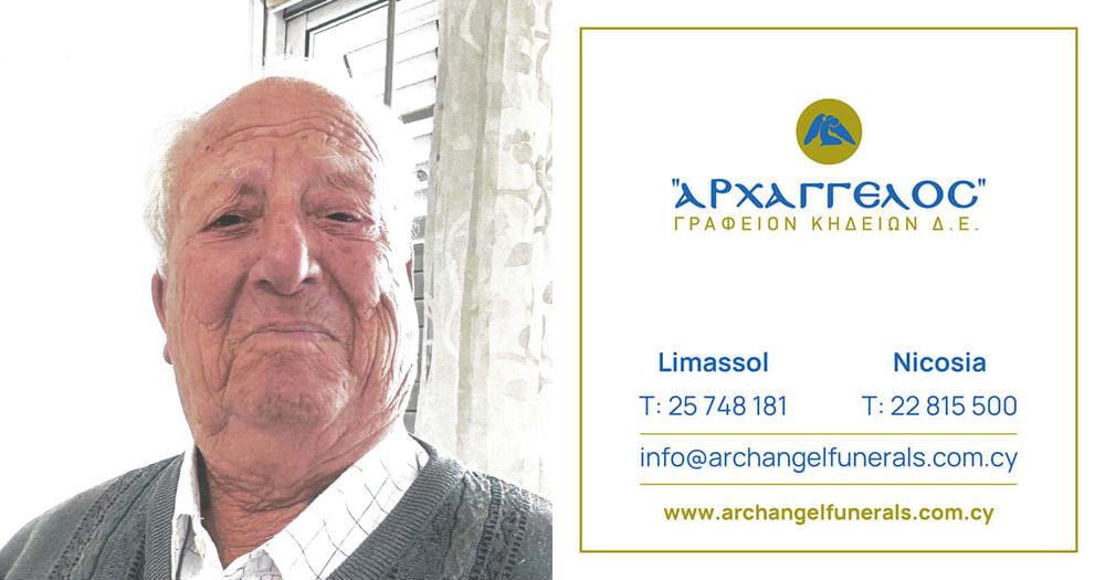 που απεβίωσε στις 04.11.2025 σε ηλικία 91 ετών κηδεύουμε την Πέμπτη 06.11.2025 και ώρα 11:00 π.μ. από τον Ιερό Ναό Αγ.Κοσμά Αιτωλού (κοιμητήριο Σφαλαγγιωτισσας) στη Λεμεσό και καλούμε όλους όσους τιμούν τη μνήμη του να παραστούν.