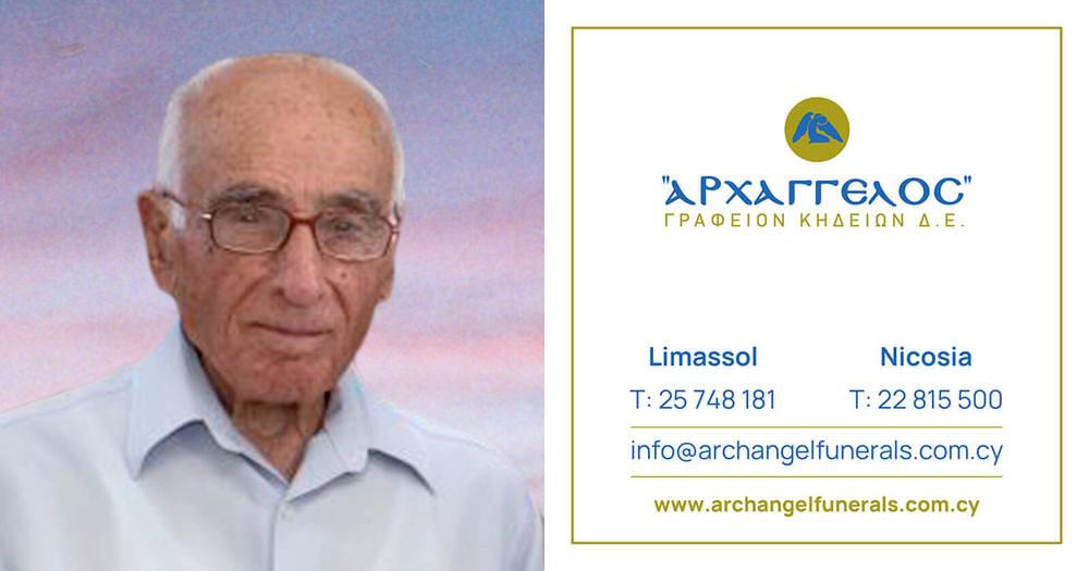 που απεβίωσε στις 22.01.2025, σε ηλικία 96 ετών, κηδεύουμε το Σάββατο 25.01.2025 και ώρα 10:00 π.μ. από τον Ιερό Ναό Αποστόλου Ανδρέα στη Μέσα Γειτονιά, Λεμεσό και καλούμε όσους τιμούν τη μνήμη του να παραστούν.