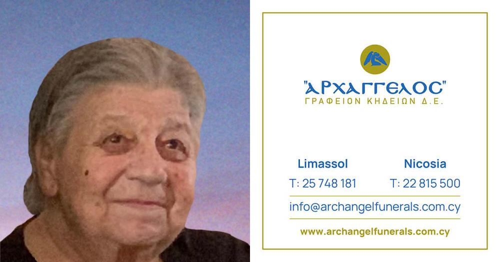 που απεβίωσε την Τετάρτη 22.04.2026,σε ηλικία 89 ετών, κηδεύουμε την Πέμπτη 23.04.2026 και ώρα 12:30 μ.μ. από τον Ιερό Ναό Αγίου Κοσμά Αιτωλού στη Λεμεσό και καλούμε όλους όσους τιμούν τη μνήμη της να παραστούν.