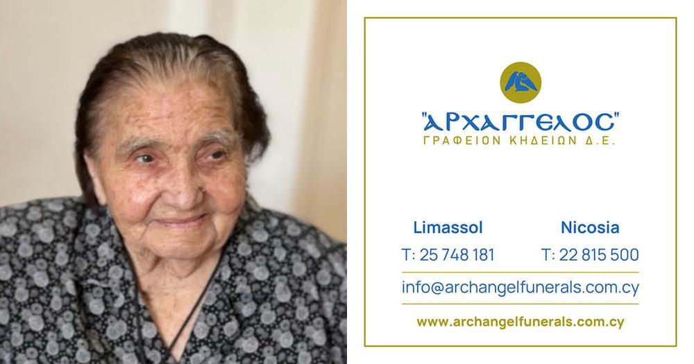 που απεβίωσε στις 05.02.2026 σε ηλικία 93 ετών κηδεύουμε την Παρασκευή 06.02.2026 και ώρα 2:00 μ.μ. από τον Ιερό Ναό Αγίου Αντωνίου στη Λεμεσό και καλούμε όσους τιμούν τη μνήμη της να παραστούν.