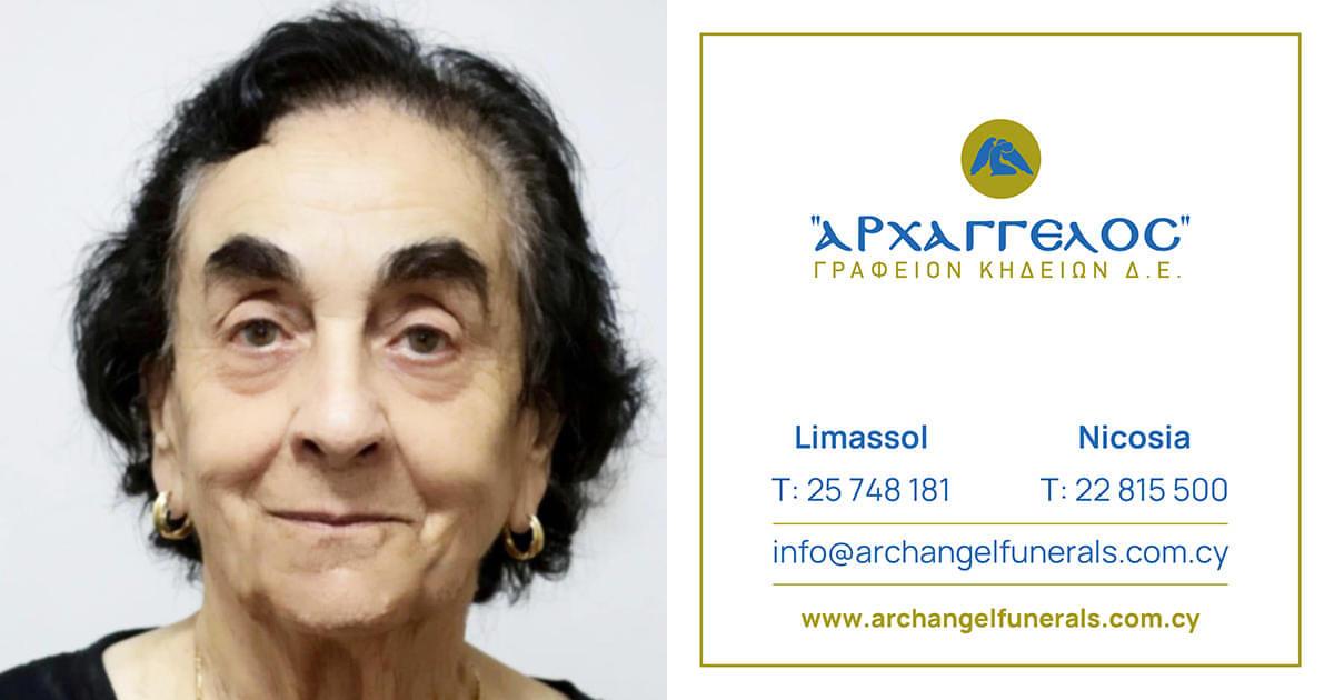 που απεβίωσε στις 31.01.2026 σε ηλικία 86 ετών κηδεύουμε τη Δευτέρα 02.02.2026 και ώρα 12:30 μ.μ. από τον Ιερό Ναό Αποστόλου Πέτρου και Παύλου στη Λεμεσό και καλούμε όσους τιμούν τη μνήμη της να παραστούν.