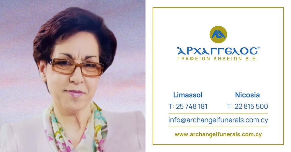 που απεβίωσε τη Κυριακή 07.09.2025 σε ηλικία 72 ετών κηδεύουμε τη Τρίτη 09.09.2025 και ώρα 11:00 π.μ. από τον Ιερό Ναό Αγ.Κοσμά Αιτωλού (κοιμητήριο Σφαλαγγιώτισσας) στη Λεμεσό και καλούμε όσους τιμούν τη μνήμη της να παραστούν.