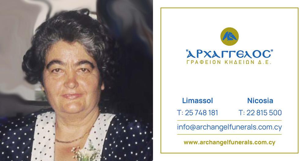 που απεβίωσε στις 15.03.2026, σε ηλικία 79 ετών κηδεύουμε την Πέμπτη 19.03.2026 και ώρα 1:00 μ.μ. από τον Ιερό Ναό Αγίου Νικολάου στη Λεμεσό και καλούμε όσους τιμούν τη μνήμη της να παραστούν.