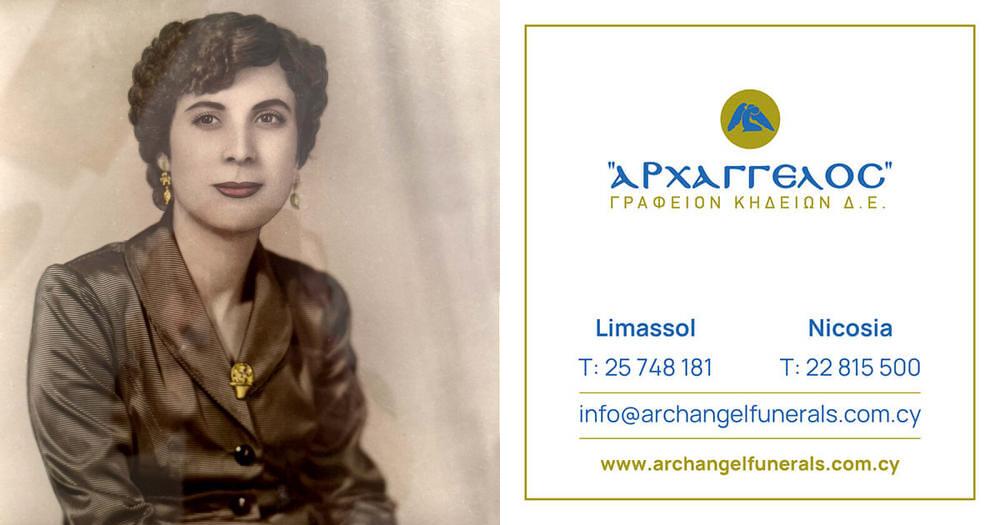που απεβίωσε τη Παρασκευή 29.08.2025, σε ηλικία 91 ετών, κηδεύουμε τη Δευτέρα 01.09.2025 και ώρα 1:00 μ.μ. από τον Ιερό Ναό Αγίου Νικολάου στη Λεμεσό και καλούμε όσους τιμούν τη μνήμη της να παραστούν.
