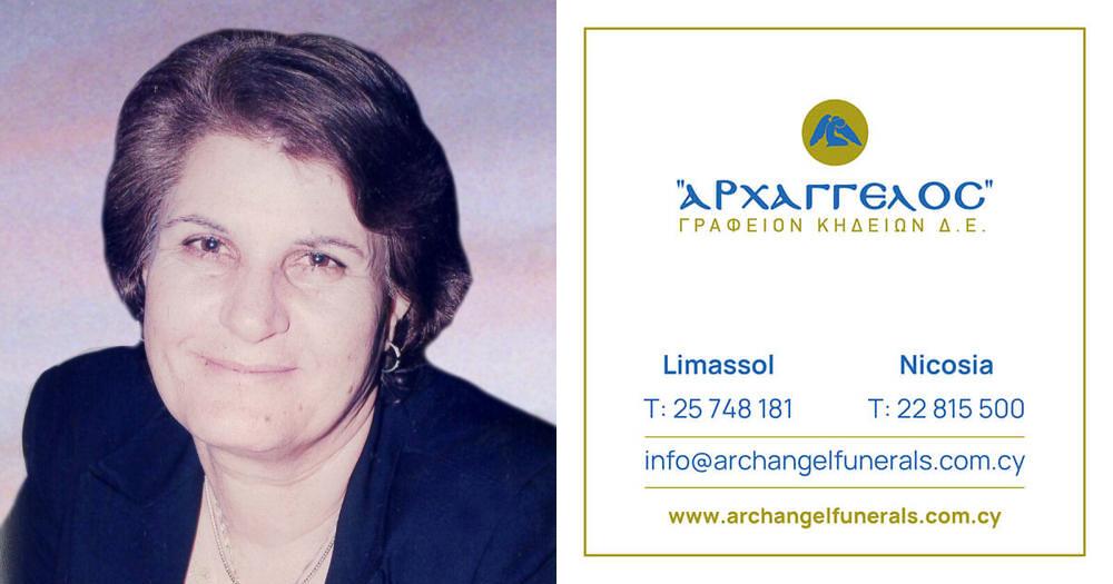 που απεβίωσε την Παρασκευή 14.03.2025, κηδεύουμε το Σαββάτο 15.03.2025 και ώρα 2:00 μ.μ. από τον Ιερό Ναό Αγίας Βαρβάρας στο Ζακάκι Λεμεσού και καλούμε όσους τιμούν τη μνήμη της να παραστούν.