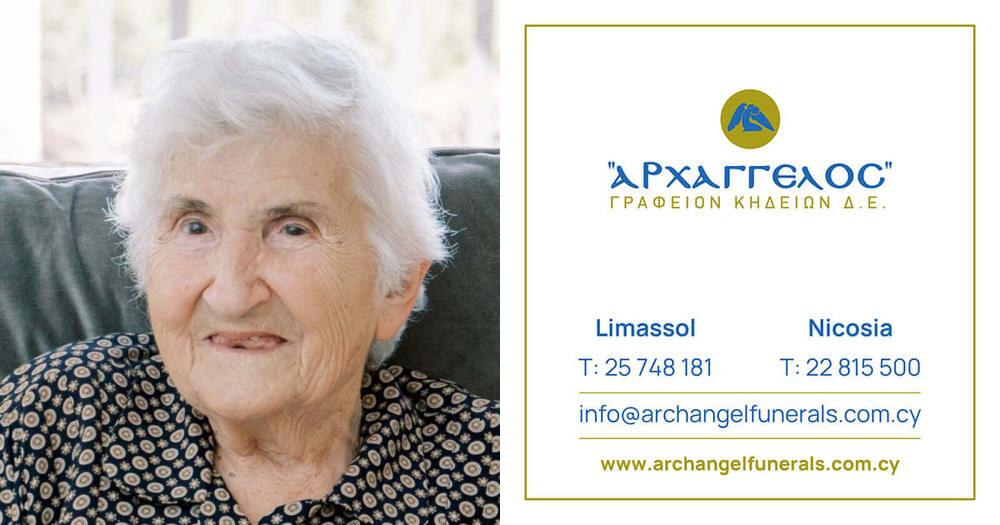που απεβίωσε στις 11.12.2025 σε ηλικία 96 ετών κηδεύουμε το Σαββατο 13.12.2025 και ώρα 10:00 π.μ. από τον Ιερό Ναό Αγ.Νεοφύτου Συνοικ.Μακαρίου στη Λεμεσό και καλούμε όσους τιμούν τη μνήμη της να παραστούν.