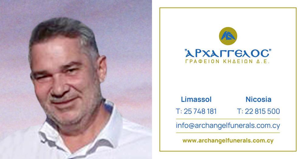που απεβίωσε στις 31.10.2025 σε ηλικία 57 ετών κηδεύουμε την Τρίτη 04.11.2025 και ώρα 3:00 μ.μ. από τον Ιερό Ναό Αγ. Γεωργίου στον Ύψωνα και καλούμε όλους όσους τιμούν τη μνήμη του να παραστούν.