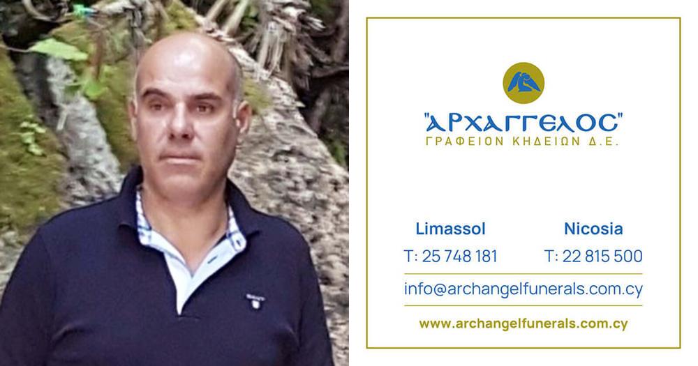 που απεβίωσε την Παρασκευή 14.08.2025, σε ηλικία 58 ετών, κηδεύουμε το Σαββάτο 16.08.2025 και ώρα 10:00 π.μ. από τον Ιερό Ναό Παναγίας Γλυκιώτισσας στη Λεμεσό και καλούμε όσους τιμούν τη μνήμη του να παραστούν.