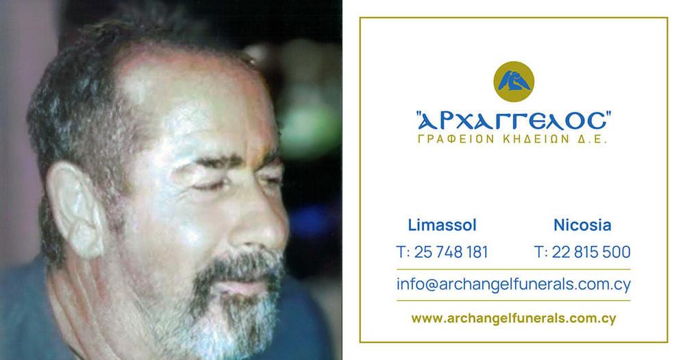 που απεβίωσε την Τετάρτη 13.08.2025, σε ηλικία 65 ετών, κηδεύουμε τη Δευτέρα 18.08.2025 και ώρα 11:30 π.μ. από τον Ιερό Ναό Αγίου Νικολάου στην Λεμεσό και καλούμε όσους τιμούν τη μνήμη του να παραστούν.