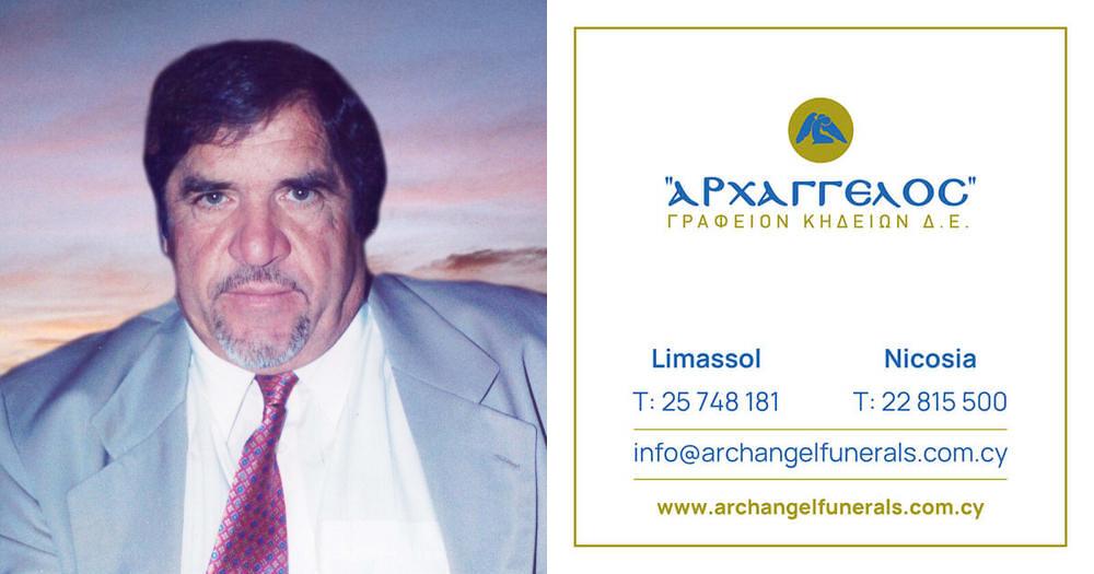 που απεβίωσε την Κυριακή 10.08.2025, σε ηλικία 84 ετών, κηδεύουμε την Τρίτη 12.08.2025 και ώρα 11:00 π.μ. από τον Ιερό Ναό Παναγίας Ευαγγελίστριας στα Πολεμίδια Λεμεσού και καλούμε όσους τιμούν τη μνήμη του να παραστούν.
