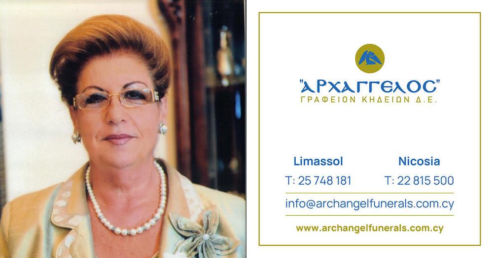 που απεβίωσε την Παρασκευή 15.11.2024, σε ηλικία 73 ετών, κηδεύουμε την Δευτέρα 18.11.2024 και ώρα 12:00 το μεσημέρι από τον Ιερό Ναό Παναγίας Τριχερούσας στη Λεμεσό και καλούμε όσους τιμούν τη μνήμη της να παραστούν.