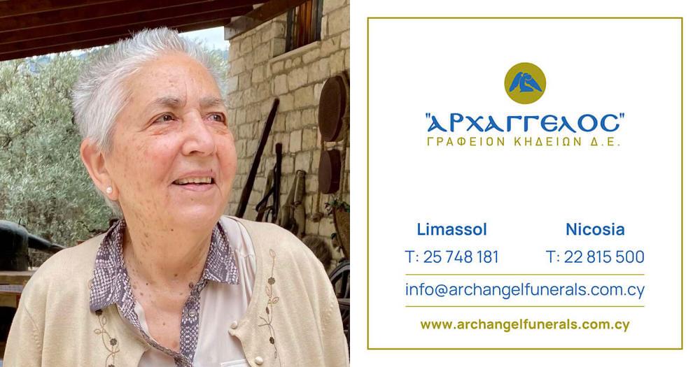 που απεβίωσε στις 20.12.2023, σε ηλικία 85 ετών, κηδεύουμε την Παρασκευή 22.12.2023 και ώρα 1:00 μ.μ. από τον Ιερό Ναό Αγίας Ζώνης στη Λεμεσό και καλούμε όσους τιμούν τη μνήμη της να παραστούν.