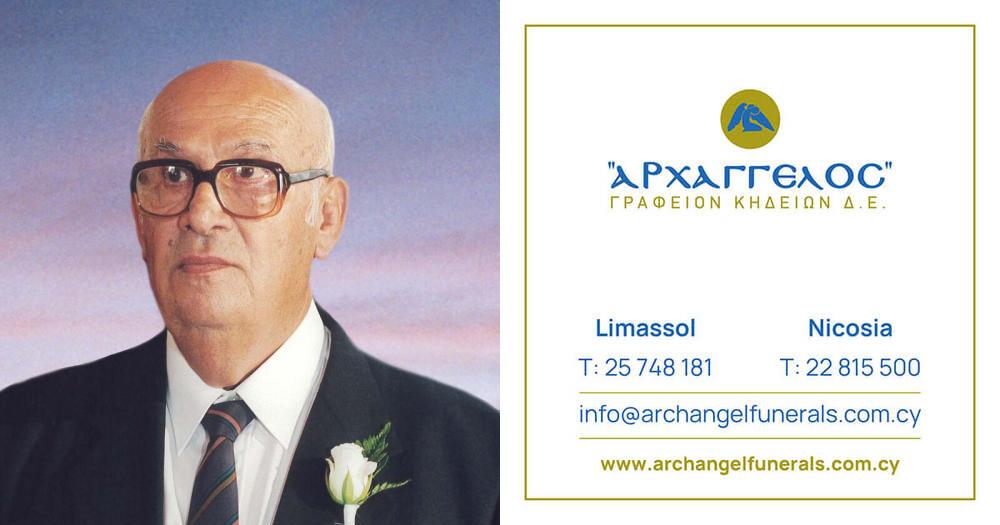 που απεβίωσε την Πέμπτη 10.10.2024, σε ηλικία 90 ετών, κηδεύουμε τη Δευτέρα 14.10.2024 και ώρα 10:00 π.μ. από τον Ιερό Ναό Αγίου Κοσμά Αιτωλού (κοιμητήριο Σφαλαγγιώτισσας) στη Λεμεσό και καλούμε όσους τιμούν τη μνήμη του να παραστούν.