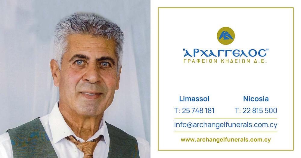 που απεβίωσε το Σάββατο 24.08.2024, σε ηλικία 64 ετών, κηδεύουμε το Σάββατο 31.08.2024 και ώρα 10:00 π.μ. από τον Ιερό Ναό Αγίου Νεοφύτου στα Κάτω Πολεμίδια, Λεμεσό και καλούμε όσους τιμούν τη μνήμη του να παραστούν.
