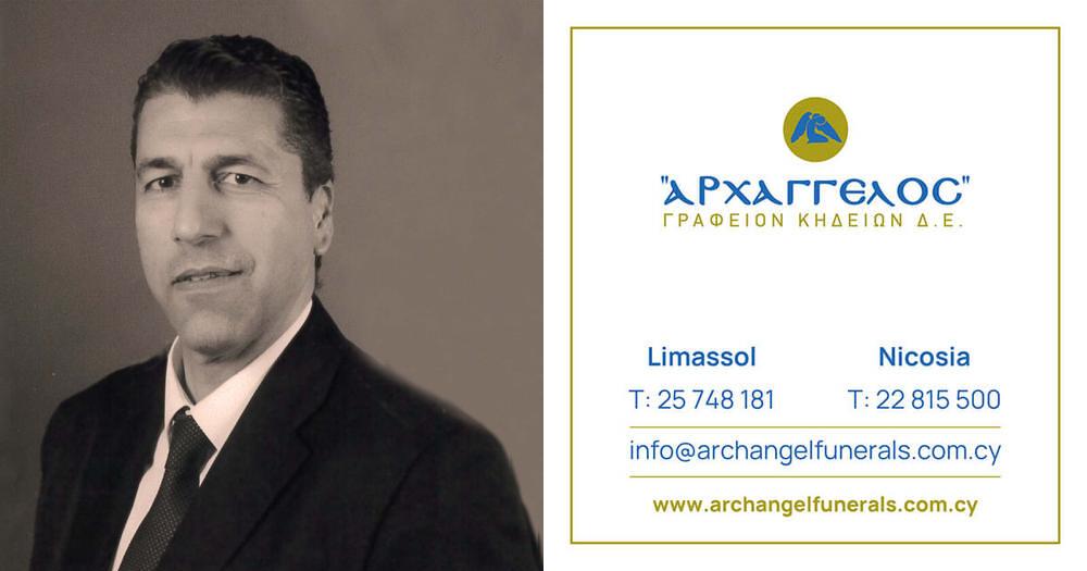 που απεβίωσε την Τρίτη 15.04.2025, σε ηλικία 57 ετών, κηδεύουμε την Πέμπτη 17.04.2025 και ώρα 1:00 μ.μ. από τον Ιερό Ναό Αγίου Νικολάου στη Λεμεσό και καλούμε όσους τιμούν τη μνήμη του να παραστούν.