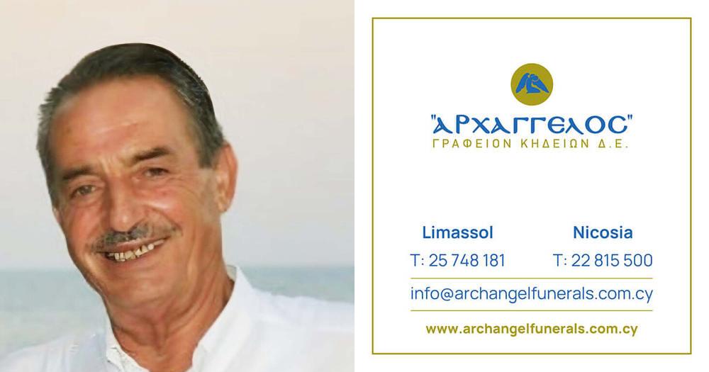 που απεβίωσε το Σάββατο 28.09.2024, σε ηλικία 80 ετών, κηδεύουμε τη Δευτέρα 30.09.2024 και ώρα 12:00 μ.μ. από τον Ιερό Ναό Αγίου Νικολάου στη Λεμεσό και καλούμε όσους τιμούν τη μνήμη του να παραστούν.