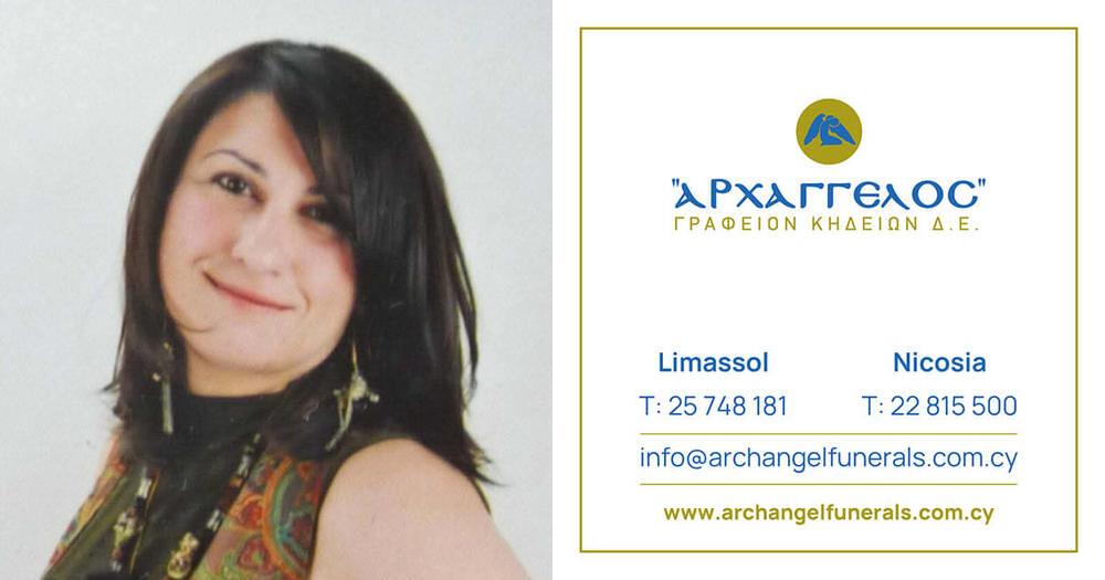 που απεβίωσε την Τετάρτη 18.06.2025, σε ηλικία 56 ετών, κηδεύουμε τη Δευτέρα 23.06.2025 και ώρα 10:00 π.μ. από τον Ιερό Ναό Αγίου Νικολάου στη Λεμεσό και καλούμε όσους τιμούν τη μνήμη της να παραστούν.
