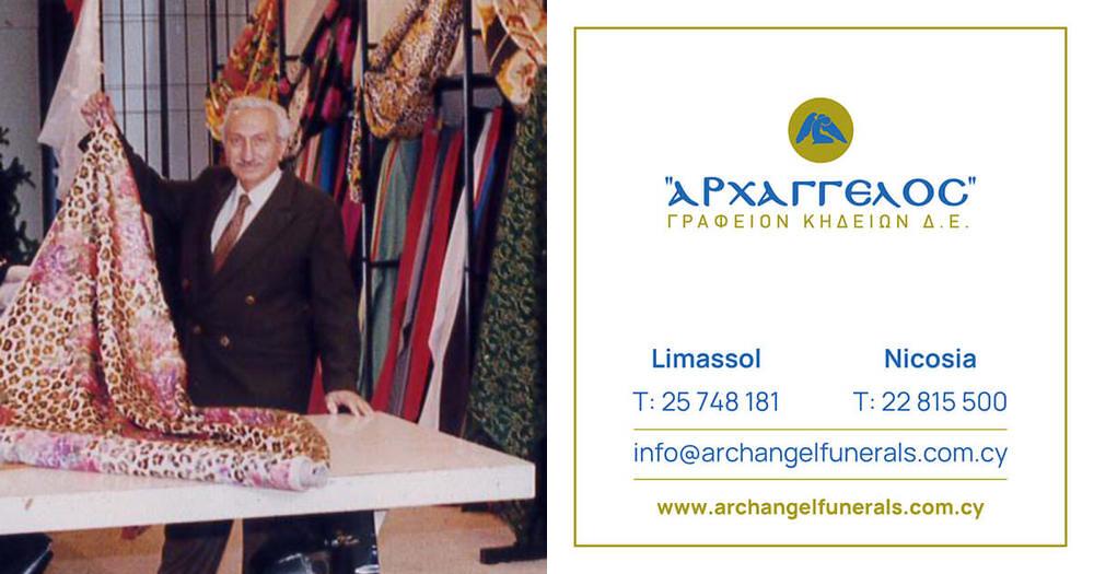 που απεβίωσε το Σάββατο 18.05.2024, σε ηλικία 93 ετών, κηδεύουμε την Τετάρτη 22.05.2024 και ώρα 2:00 μ.μ. από τον Ιερό Ναό Αγίου Νικολάου στη Λεμεσό και καλούμε όσους τιμούν τη μνήμη του να παραστούν.