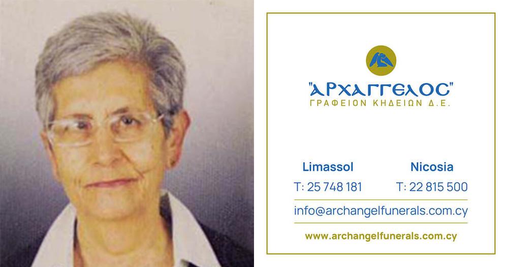 που απεβίωσε τη Δευτέρα 01.04.2024, σε ηλικία 84 ετών, κηδεύουμε την Πέμπτη 04.04.2024 και ώρα 11:00 π.μ. από τον Ιερό Ναό Αγίου Κοσμά του Αιτωλού (κοιμ. Σφαλαγιώτισσας) στη Λεμεσό και καλούμε όσους τιμούν τη μνήμη της να παραστούν.