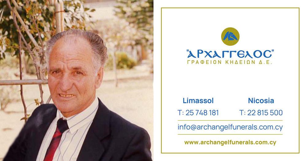 που απεβίωσε την Τετάρτη 27.12.2023, σε ηλικία 91 ετών, κηδεύουμε το Σάββατο 30.12.2023 και ώρα 10:00 π.μ. από τον Ιερό Ναό Αποστόλου Ανδρέα Χαράκη στη Λεμεσό και καλούμε όσους τιμούν τη μνήμη του να παραστούν.
