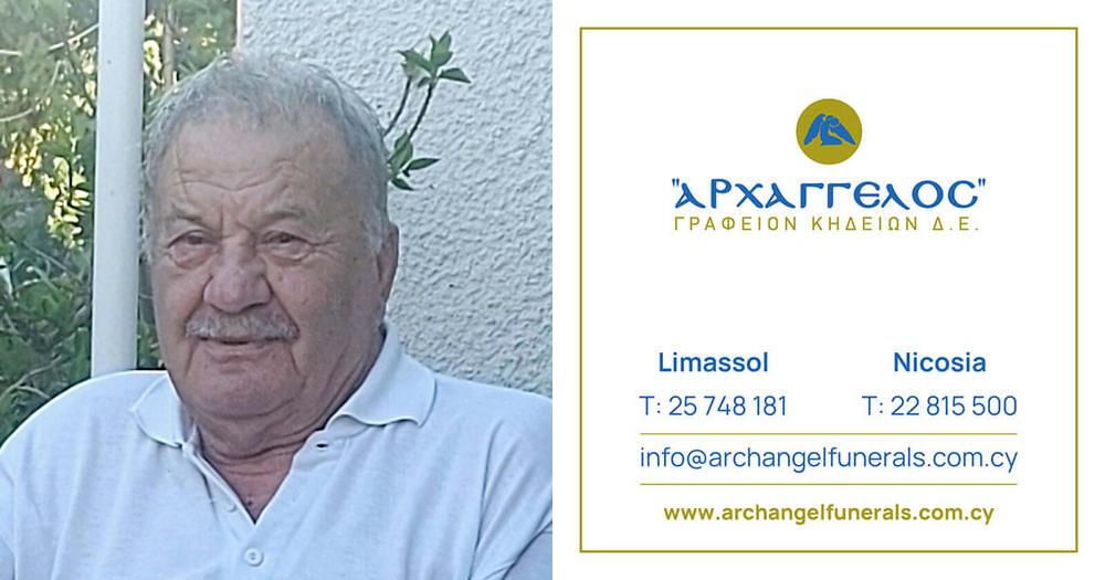 που απεβίωσε την Τρίτη 26.03.2024, σε ηλικία 83 ετών, κηδεύουμε την Τετάρτη 27.03.2024 και ώρα 1:00 μ.μ. από τον Ιερό Ναό Αγίου Θεοδώρου στο Μοναγρούλλι και καλούμε όσους τιμούν τη μνήμη του να παραστούν.