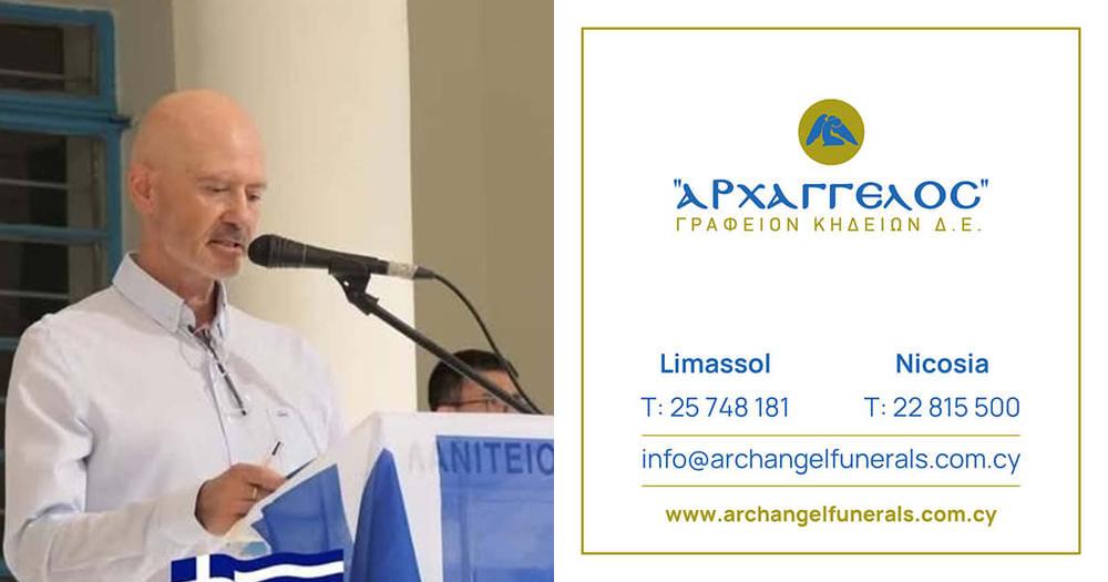 Διευθυντή Λανιτείου Γυμνασίου Λεμεσού, αναγγέλλει ότι η Εξόδιος Ακολουθία θα τελεστεί τη Δευτέρα, 27 Απριλίου 2026, και ώρα 3:00 μ.μ., στον Ιερό Ναό Αγίων Αρσενίου και Παϊσίου Λεμεσού.