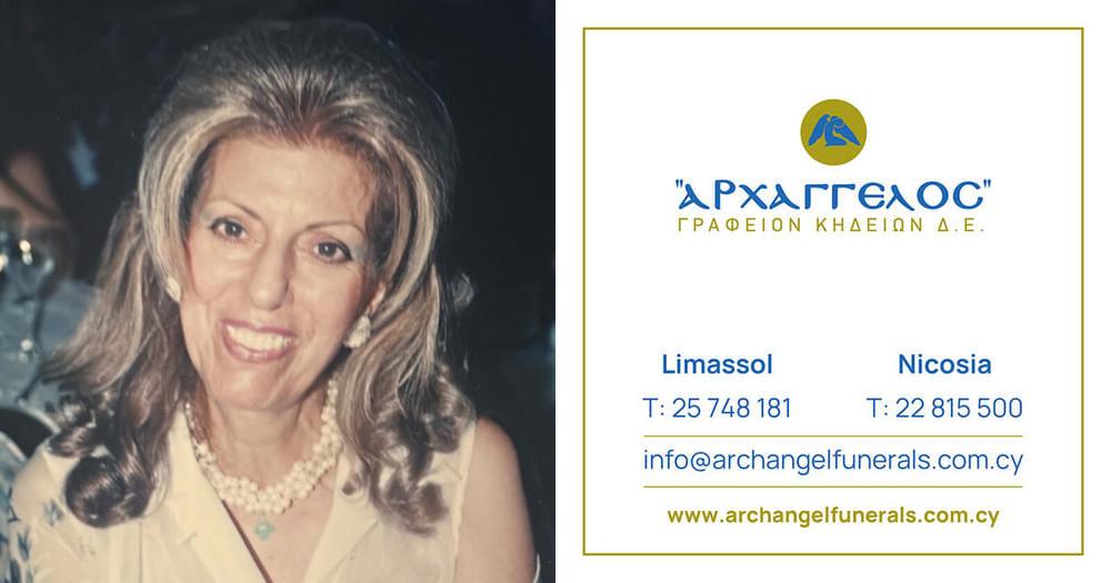 που απεβίωσε τη Μ.Τετάρτη 16.04.2025, σε ηλικία 80 ετών, κηδεύουμε τη Μ.Παρασκευή 18.04.2025 και ώρα 11:00 μ.μ. από τον Ιερό Ναό Αγίου Νικολάου (μικρή εκκλησία) στη Λεμεσό και καλούμε όσους τιμούν τη μνήμη της να παραστούν.