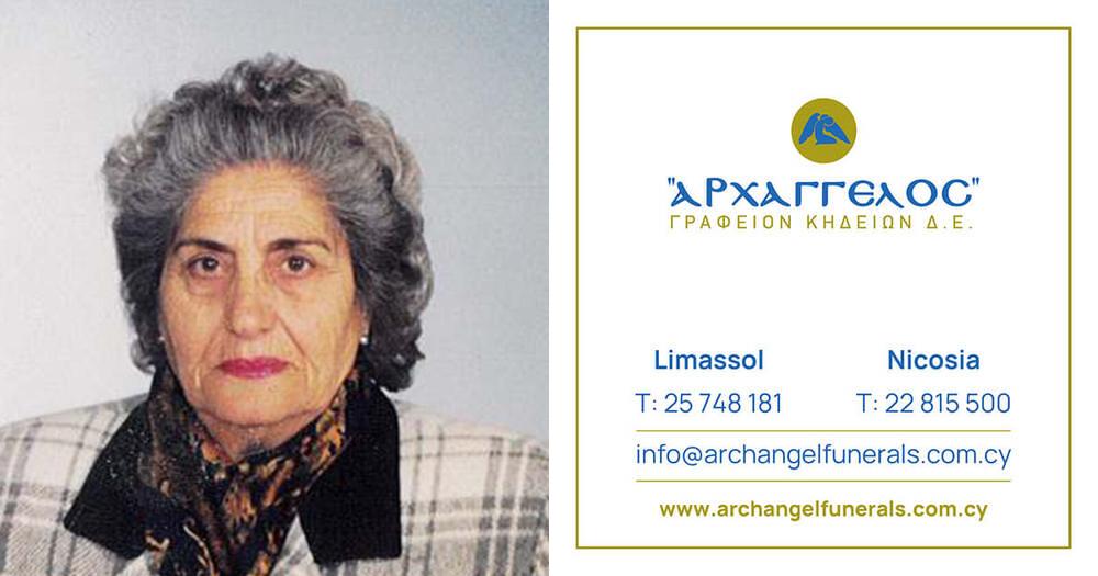που απεβίωσε την Τρίτη 25.6.2024, σε ηλικία 98 ετών, κηδεύουμε την Πέμπτη 27.06.2024 και ώρα 1:00 μ.μ. από τον Ιερό Ναό Αγίου Νικολάου στη Λεμεσό και καλούμε όσους τιμούν τη μνήμη της να παραστούν.