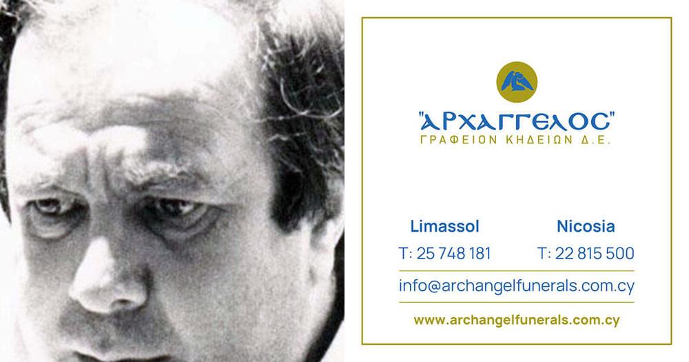 που απεβίωσε την Κυριακή 13.07.2025, σε ηλικία 87 ετών, κηδεύουμε την Τετάρτη 16.07.2025 και ώρα 10:00 π.μ. από τον Ιερό Ναό Αγίου Νικολάου στη Λεμεσό και καλούμε όσους τιμούν τη μνήμη του να παραστούν.