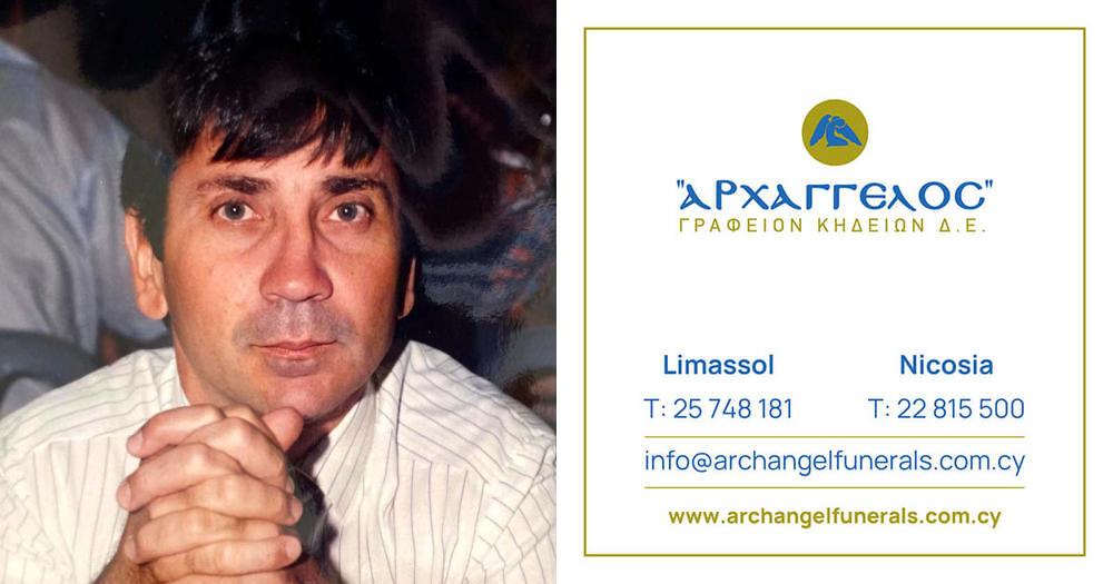 Η εξόδιος ακολουθία θα είναι την Πέμπτη 21.03.2024 και ώρα 11:00 π.μ. από τον Ιερό Ναό Αγίου Στυλιανού (Συν. Άσπρες) στον Στρόβολο και καλούμε όσους τιμούν τη μνήμη του να παραστούν.