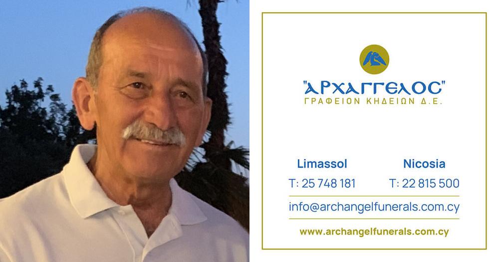 που απεβίωσε στις 26.12.2025 σε ηλικία 76 ετών κηδεύουμε την Κυριακή 28.12.2025 και ώρα 2:00 μ.μ. από τον Ιερό Ναό Παναγίας Χαρίτων Πύλη Πάφου στην Λευκωσία και καλούμε όσους τιμούν τη μνήμη του να παραστούν.