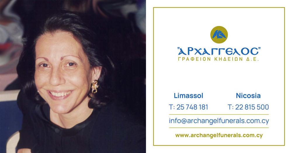 που απεβίωσε στις 13.12.2025 κηδεύουμε τη Τρίτη 16.12.2025 και ώρα 11:00 π.μ από τον Ιερό Ναό Αγίας Τριάδας στην Λεμεσό και καλούμε όσους τιμούν τη μνήμη της να παραστούν.