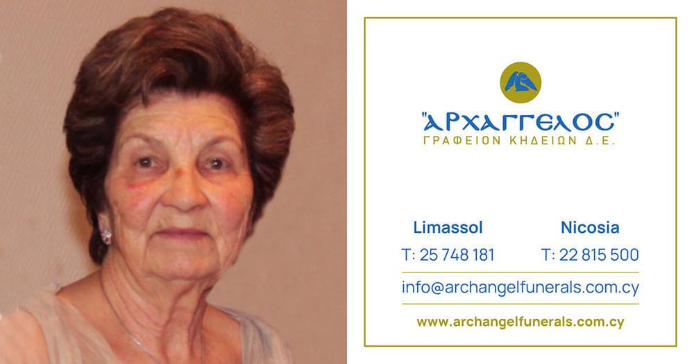 που απεβίωσε την Τετάρτη 18.12.2024, σε ηλικία 87 ετών, κηδεύουμε τη Δευτέρα 23.12.2024 και ώρα 12:00 μεσημέρι από τον Ιερό Ναό Αποστόλου Ανδρέα Πλατύ Αγλαντζιάς και καλούμε όσους τιμούν τη μνήμη της να παραστούν.
