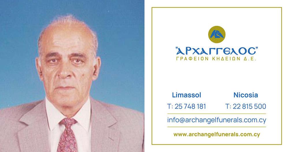 που απεβίωσε τη Παρασκευή 29.11.2024, σε ηλικία 91 ετών, κηδεύουμε τη Δευτέρα 2.12.2024 και ώρα 2:00 μ.μ. από τον Ιερό Ναό Αγίας Βαρβάρας στο Ζακάκι, Λεμεσό και καλούμε όσους τιμούν τη μνήμη του να παραστούν.