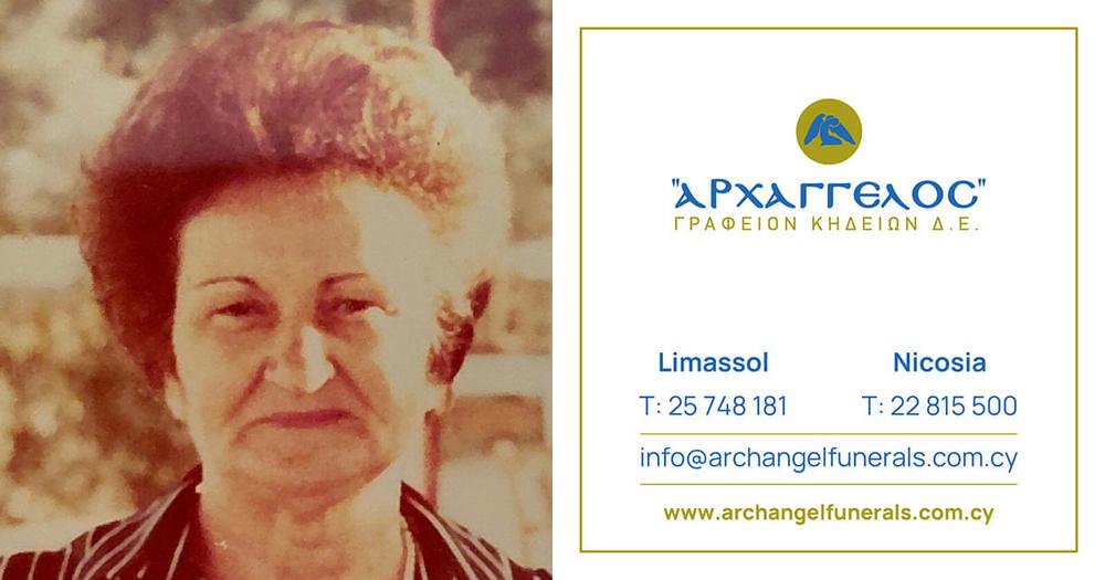 που απεβίωσε στις 22.09.2025 σε ηλικία 92 ετών κηδεύουμε την Πέμπτη 25.09.2025 και ώρα 12:00 μ.μ. από τον Ιερό Ναό Ζώνης στη Λεμεσό και καλούμε όσους τιμούν τη μνήμη της να παραστούν.
