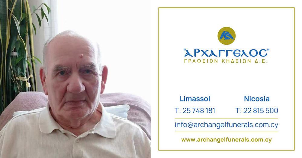 που απεβίωσε την Παρασκευή 04.88.2023, σε ηλικία 91 ετών, κηδεύουμε αύριο Δευτέρα 07.08.2023 και ώρα 11:00 π.μ. από τον Ιερό Ναό Αγίου Νικολάου στη Λεμεσό και καλούμε όσους τιμούν τη μνήμη του να παραστούν.