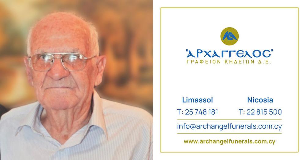 που απεβίωσε στις 09.12.2025 σε ηλικία 100 ετών κηδεύουμε την Παρασκευή 12.12.2025 και ώρα 1:00 μ.μ. από τον Ιερό Ναό Αγίου Νικολάου στο Πέρα Πεδί στη Λεμεσό και καλούμε όλους όσους τιμούν τη μνήμη του να παραστούν.