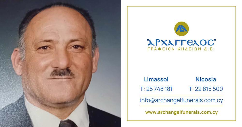 που απεβίωσε στις 20.01.2025, σε ηλικία 91 ετών, κηδεύουμε την Παρασκευή 24.01.2025 και ώρα 2:00 μ.μ. από τον Ιερό Ναό Αγίου Κοσμά του Αιτωλού στη Λεμεσό και καλούμε όσους τιμούν τη μνήμη του να παραστούν.