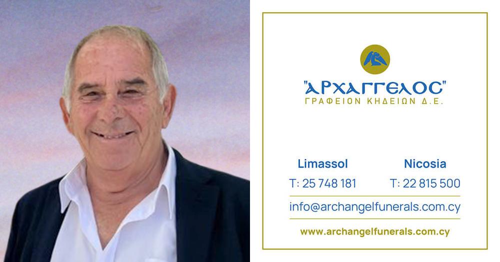 που απεβίωσε την Τρίτη 15.07.2025, σε ηλικία 72 ετών, κηδεύουμε την Παρασκευή 18.07.2025 και ώρα 1:00 μ.μ. από τον Ιερό Ναό Αγίου Νικολάου στη Λεμεσό και καλούμε όσους τιμούν τη μνήμη του να παραστούν.