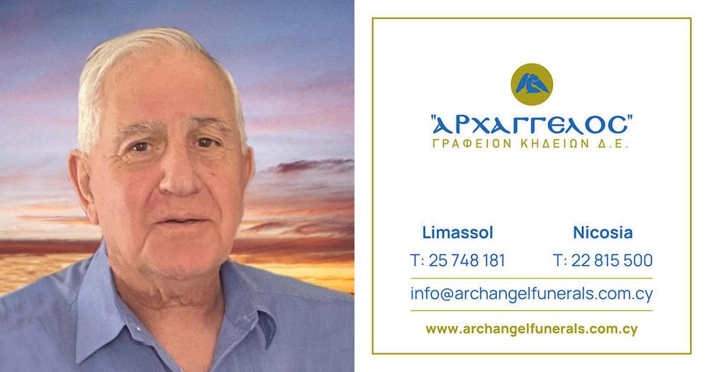 που απεβίωσε την Παρασκευή 07.03.2025, σε ηλικία 85 ετών, κηδεύουμε τη Δευτέρα 10.03.2025 και ώρα 11:30 π.μ. από τον Ιερό Ναό Αγίου Νικολάου στη Λεμεσό και καλούμε όσους τιμούν τη μνήμη του να παραστούν.